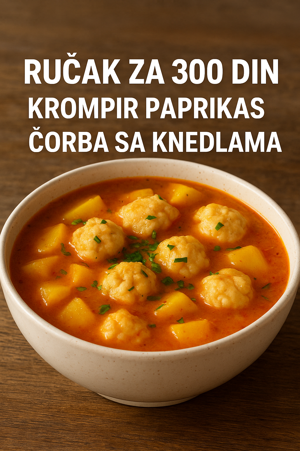 Ukusna, domaća čorba – gusta, puna krompira i mekanih knedlica, savršena za dan kad želiš da uštediš, a ipak jedeš nešto kvalitetno i na kašiku.